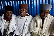 Characterized by its thickness, the Gabi is the traditional garment of men belonging to the Amhara ethnic group due to the high altitude nature of their homeland, most of the time it's worn by the elderly and clergy.[2] Usually Amhara women get together for spinning the yarn required to make several Gabi's. Amhara women present Gabi's as a gift for their husbands.[3]
