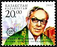 Gabit Makhmutuli Musirepov (Kazakh: Ğabit Mahmūtūly Müsırepov, Ғабит Махмұтұлы Мүсірепов; Russian: Габит Махмутович Мусрепов; 22 March 1902 – 31 December 1985) was a Soviet Kazakh writer, playwright and author of libretto to Kazakh opera Kyz-Zhibek.[1][2] He was awarded the People's Writer of the Kazakh Soviet Socialist Republic, served as President of the Kazakhstan Union of Writers, and was a member of the Kazakhstan Academy of Sciences.