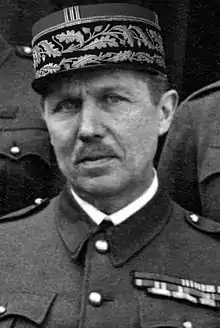 Promoted to squadron leader in 1919, he entered the elite École supérieure de guerre and, upon his release, was assigned to the Headquarter of the Fourth Army Corps, which he left to become a professor at the Ecole Superieur de Guerre (1922-1925). Among his pupils, Charles De Gaulle, Eugène Bridoux and Georges Loustaunau-Lacau. During a one-year leave of absence, he assumed the duties of general manager of the Montlhéry Autodrome.[10] He then took over the direction of Studies at Saumur (1926-1931) and then became Chief of Staff of the Cavalry Inspection (General Brécard[11]). In 1932, he became an auditor at the Center for Hautes Etudes Militaires. During this period, he defended the offensive concept of mobile and maneuverable warfare[12] and in particular the interaction between tanks and aircraft.[13] Colonel in 1933, he takes command of the 4th Tunisian Spahis Regiment in Sfax[14] which has just experienced a resounding scandal (the colonel has just been murdered by his wife's lover, a lieutenant of the regiment.)[15] In 1937, he is in command of the 4th Mechanized Light Brigade at Saint-Germain-en-Laye.[16]