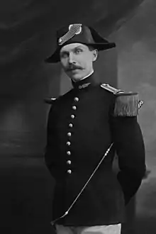 He entered Saint Cyr in 1903 - promotion of La Tour d'Auvergne- and left for the cavalry. After his time at the Saumur Cavalry School of Application, he served in the Dragoons and then in the Chasseurs d’Afrique. At the end of the course of instruction, he was appointed sub-squire of the Cadre Noir. In 1909 he married Yvonne O'Mahony, daughter of Count O'Mahony and Marthe d'Amphernet of Pontbellanger.[2] The O'Mahony are descended from an illustrious Irish family who came to serve the King of France. Barthelemy, Count O'Mahony,[3] Lieutenant-General of the King's Armies, Grand Cross of the Order of St. Louis, commanded the Berwick Regiment in 1788.[4]