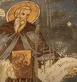 ![]() Gabriel the Iberian holding the Panagia Portaitissa, fresco from the Monastery of Iviron | |