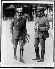 During the First World War, perception of D'Annunzio in Italy transformed from literary figure into a national war hero.[6] He was associated with the elite Arditi storm troops of the Italian Army and took part in actions such as the Flight over Vienna. As part of an Italian nationalist reaction against the Paris Peace Conference of 1919, he set up the short-lived Italian Regency of Carnaro in Fiume with himself as Duce. The Charter of Carnaro made music the fundamental principle of the state, which was corporatist in nature.[7] Though D'Annunzio preached Italian ultranationalism and never called himself a fascist, he has been credited with partially inventing Italian fascism,[8] as both his ideas and aesthetics were an influence upon Benito Mussolini.