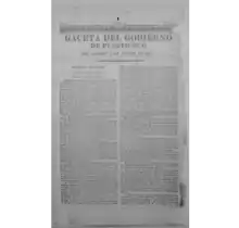 When the Gaceta was created in 1807,[2] the issues were four pages long and published on Wednesdays and Saturdays under the name La Gazeta de Puerto-Rico. By the 1820s the publication went by the name Gaceta del Gobierno de Puerto-Rico and was published on Tuesdays, Thursdays and Saturdays. In 1859 the newspaper's title was shortened to Gaceta de Puerto-Rico. It was a daily newspaper from 1897 to 1902.[1]