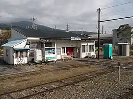 Gakunan-Enoo Station is an unmanned station with a bay platform serving two tracks. The wooden station building has no ticket machine, and is unattended.