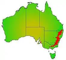 Galaxias olidus occupies a vast geographical range on both sides of the Great Dividing Range from southern Queensland, south through eastern New South Wales, across much of Victoria and further west to the Adelaide Hills in South Australia, thus being found both in the Murray-Darling basin and in eastern and southern coastal drainages. How much of their coastal distribution is due to natural river capture events (although much of it is) and how much may be due to migration is not clear, for many of the species complex members have the ability to "climb" over natural barriers with modified pelvic fin structures.[4][3]