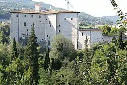 After the Albornoz's defeat his family was made Papal vicar in Rimini, Pesaro, Fano and Fossombrone.[1] In 1356 he took part in the crusade declared against the Ordelaffi of Forlì. In the 1360 he was first made commander-in-chief by the Queen of Naples Joan I, but later he switched to the Republic of Florence and then again to the Byzantine Empire. In 1372 Pope Gregory XI confirmed Galeotto general commander of the Papal Army against Bernabò Visconti, whom he defeated at Montichiari, near Brescia, the following year.