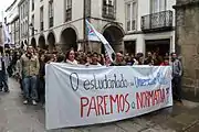 The Galician Student League has clear ideological position and rejects apoliticism. The organization openly defines itself as socialist, "independentist" and feminist[9] and participates in acts of non-student character, as nationalist, language, labor and feminist protests.