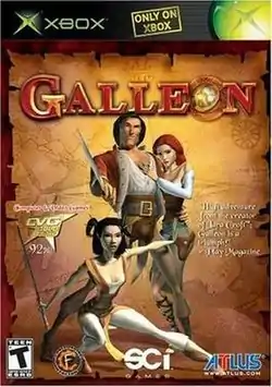 Galleon is a 2004 action-adventure game developed by Confounding Factor and published by SCi Games and Atlus for the Xbox. Designed by Toby Gard as his first independent project after leaving Core Design, the game was announced in 1997, but suffered several delays and changes in the consoles it would be released to. It was released in Europe on June 11, 2004, and in North America on August 3 to mixed reviews from critics. A mobile spin-off entitled Galleon: Dawn was released on August 26, 2004.