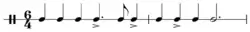 Musical compositions in the galliard form appear to have been written and performed after the dance fell out of popular use. In musical compositions, the galliard often filled the role of an after dance written in 6, which followed and mimicked another piece (sometimes a pavane) written in 4. The distinctive 6 beats to the phrase can still be heard today in songs such as "God Save the King".