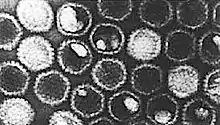 Gallid alphaherpesvirus 1 (GaHV-1) is a species of virus in the order Herpesvirales, family Herpesviridae, subfamily Alphaherpesvirinae, and genus Iltovirus.[2] Originally recognised in chickens in the United States in 1926, this virus causes avian infectious laryngotracheitis (abbreviated as AILT, ILT, or LT), a potentially fatal, economically deleterious disease, widely recognised as one of the most contagious diseases in the poultry industry.[3] The virus and its associated disease also occur in pheasants.[4]