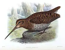 The imperial snipe (Gallinago imperialis) is a small stocky wader which breeds in the Andes. For a century it was known only from two specimens collected near Bogotá, Colombia, and was presumed extinct, but it was rediscovered in Peru in 1967 and Ecuador in 1988. It is not known if it is migratory.