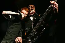 Gallows are an English hardcore punk band from Watford, Hertfordshire. The band was formed in 2005 after Laurent Barnard's previous band disbanded. Gallows' debut album, Orchestra of Wolves, was distributed in the United States by Epitaph Records, and they were subsequently signed to Warner Bros. Records for a £1 million album contract and recorded Grey Britain.[1][2] The band has been particularly successful in the UK, with two songs charting on the UK Single Charts, and have been featured in magazines such as Kerrang!, Alternative Press and Rolling Stone.[3]