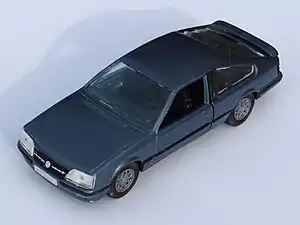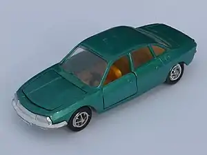 As stated by Force, Gama metal 1:42 or 1:43 scale vehicles were introduced in 1959, rather late compared to several mainstream European brands like Corgi and Dinky, but about the same period as many French and Italian models.[4][5] During the 1960s, to distinguish the smaller diecasts from larger slot cars and remote control vehicles, Gama introduced its main line called "MiniMods" (Mini Models). These were very Corgi-like with plain aluminum wheels and rubber tires.[6] While bodies were diecast, chassis were often plastic, a money saving feature that would be common throughout most diecast company lines some twenty years later. Other Minimod details were distinct, like the flat chrome 'rivet' headlights on the VW Transporter van, though early to mid-1960s cars' headlights were jeweled, which competitors Schuco and Solido avoided. Later models, however, like the BMW 7 Series from about 1990 (a very promotional looking model) had much more authentic looking clear plastic lenses.[6] Other later models, like the BMW M1 Supercar were offered in Rally (with air spoiler and rear wing) as well as regular stock versions. These BMWs also had folding 'hidden' headlights.[7]