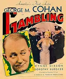 Gambling is a 1934 American crime film directed by Rowland V. Lee and written by Garrett Graham. It is based on the 1929 play Gambling by George M. Cohan. The film stars George M. Cohan, Wynne Gibson, Dorothy Burgess, Theodore Newton, Harold Healy and Walter Gilbert. The film was released on November 3, 1934, by Fox Film Corporation.[1][2][3]