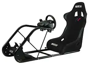 A gaming chair is a type of chair marketed towards gamers.[1][2] They differ from most office chairs in having high backrest designed to support the upper back and shoulders.[3] They are also more customizable: the armrests, back, lumbar support and headrest can all be adjusted for comfort and efficiency.[3] However, there are criticisms of gaming chairs. For example, they tend to be designed and marketed primarily for aesthetics at the expense of having worse ergonomics than modern office chairs.[4] This is a consequence of how the modern gaming chair was invented as a means of selling surplus car seats - being designed for driving at high speeds safely, not for using a computer for a prolonged period of time - hence the suboptimal ergonomics.[5]