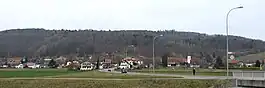 The village church of St. Martin was first mentioned in 1228. It was destroyed in a fire and rebuilt in 1513 and the nave was expanded and renovated in 1674–75. The church was probably built over a Roman inn and way station. During the Protestant Reformation it became the parish church of the local parish, which eventually grew to include the neighboring municipality of Gals.[3]