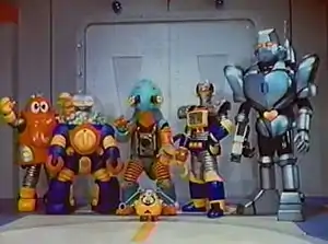 Ganbare!! Robocon (がんばれ!!ロボコン, Ganbare!! Robokon, Do Your Best!! Robocon) is a Japanese tokusatsu comedy family robot television series created by Shotaro Ishinomori and produced by Toei. It ran from October 4, 1974, to March 25, 1977, on NET TV.[1] Moero!! Robocon (燃えろ!!ロボコン, Moero!! Robokon, Burn!! Robocon) ran from January 31, 1999 (a week after the finale of Tetsuwan Tantei Robotack) to January 23, 2000 (a week before the premiere of Kamen Rider Kuuga).[2] This series joined Kyuukyuu Sentai GoGoFive.