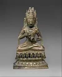 Another important Gandhāran site in which Buddhism remained strong during the 7th century was the northern city of Gilgit, a key city on the Silk Road which was visited by Chinese pilgrims to study Buddhism.[28] The region was ruled by the Patola Shahi dynasty of the Kingdom of Gilgit in the 600s and 700s, which were adherents of Vajrayana Buddhism.[29] The city later came under the rule of the Tibetan empire until the late 800s.[30]