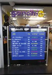 Librerías Gandhi (Gandhi Bookstores) is a bookstore chain in Mexico. They were created in 1971 and are one of the biggest bookstore chains in Mexico. After 40 years they now have more than 30 stores all over the country. The public that comes to the bookstores are mostly students, teachers, young adults, professionals, and anyone interested in culture and looking for information or entertainment.