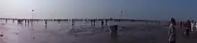 In 2007, about 300,000 pilgrims took the holy dip where the Ganges (Hooghly) meets the Bay of Bengal on the occasion of Makar Sankranti. Almost five-hundred thousand pilgrims thronged Gangasagar in 2008.[6] For the rest of the year about 500,000 people come to the island.[7] According to reports on 14 January 2018, 18-2 million people had visited Gangasagar in 2018, against 1.5 million in 2017.[8] In 2023, about 51 lakhs pilgrims gathered in the Gangasagar Mela.[3][4]