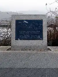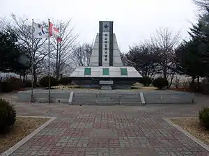 The Gapyeong Canada Monument (Korean: 캐나다 전투 기념비) is a monument erected to commemorate the sacrifice of the Canadian Forces during the Korean War, especially at the Battle of Kapyong in the Canadian Korean War Memorial Garden. The English text describing the monument reads as follows: