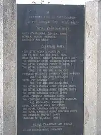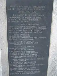 The rear monument goes into details, listing the units that participated in the Korean war as well as the size of the contribution: 26,791 Canadians during the war itself, 7,000 until 1955 with 516 casualties and 1,255 wounded. The units that served are: