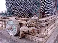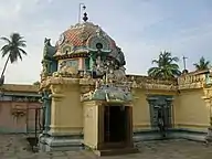 Thirukarukavoor Temple is dedicated to Shiva and is located near Papanasam, Thanjavur, Tamil Nadu, India. The nearest railway station is in Papanasam, about 3 kilometres from the place. The nearest airport is in Trichy. Thirukarukavoor is situated in Thirukkarugavur, a village located on the banks of Vettar River, a tributary of River Cauveri.[9] People from Chennai and northern parts of Tamil Nadu may reach Kumbakonam and from there to Thirukarukavoor. People from east and southern parts of Tamil Nadu must reach Thanjavur and from there to Thirukarukavoor. The temple is one of the prominent and most visited temples in the district.[10] The temple has a 5-tier Rajagopuram and an outer prakaram(closed precincts of a temple). The temple is 460 ft by 284 ft and has a gopuram facing east and also has an entrance facing south.[2] There is a garden in the southern side and a Vasantha Mandapam in the north.[2] The sanctum of Mullaivananathar is in the second precinct and the shrine of Amman is located parallel to the Swami shrine. The shrine is Nandi is located in front of Swami, with the Palipeeda and Dwajasthambam located right behind the Nandi.[2] There is a Nataraja hall and a yagasalai. There are separate shrines for Nataraja, Somaskanda, Karpaga Vinayagar and Navagrahas.[2] There are separate shrines for Sekkizhar, Nalvar, Santhanachariar, Dakshinamurthy, Nrithivu Nayakkar, Arthanariswarar, Mahalakshmi, Arumugam, Brahma, Durga and Chandikeswarar.[2] There are four water bodies associated with the temple. Sheerakundam (Parkulam) is the temple tank located opposite to the temple and the water is believed to be born out of the milk of Kamadenu, the sacred cow.[11] Sathyakupam is a well located in between the shrines of Swami and Amman. Brahma Theertham is a tank located north east of the temple - Nataraja gives theerthavari during Karthigai Thivatharai in this tank.[11] Vritha Kaveri is the branch of Kaveri, Vettaru (also called Mullivay) - the stepshore is the bank for many of the temple occasions.[11] The temple tree, Mullai tree is located in between the Swami shrine and Chandikeswarar shrine.[11] In 2020, a hall for Annadhanam was added by the Hindu Religious and Endowment Department, by the Government of Tamil Nadu.[12]