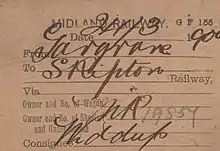 - "1899-1908 Coaching; Piece 1026". Midland Railway Operating, Traffic and Coaching Depts: 135. 1899. Retrieved 12 April 2021.