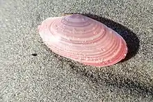 Gari lineolata, or the pink sunset shell, is a bivalve mollusc of the family Psammobiidae.
