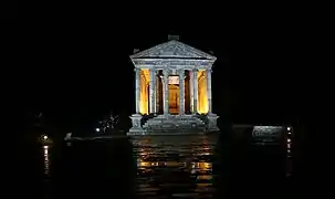 The Temple of Garni (Armenian: Գառնիի տաճար, Gaṙnii tačar)[6][lower-alpha 2] is the only standing Greco-Roman colonnaded building in Armenia and the former Soviet Union. Built in the Ionic order, it is located in the village of Garni, in central Armenia, around 30 km (19 mi) east of Yerevan. It is the best-known structure and symbol of pre-Christian Armenia.