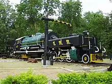 A Garratt locomotive is a type of steam locomotive invented by British engineer Herbert William Garratt that is articulated into three parts.[1] Its boiler, firebox, and cab are mounted on a centre frame or "bridge". The two other parts, one at each end, have a pivot to support the central frame; they consist of a steam engine unit – with driving wheels, trailing wheels, valve gear, and cylinders, and above it, fuel and/or water storage.