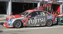 2010 saw the team's major sponsor change from Valvoline to Fujitsu with the livery changing in accordance, to red and white separated by black lines.[21] The Clipsal 500 saw Holdsworth finish on the podium at the event for the third year in a row, Holdsworth taking third place on Sunday.[22] The team came very close to winning the Bathurst 1000, with Holdsworth and Besnard leading the majority of the race. A drive-through penalty for speeding in pit lane with thirty laps to go meant that the pair would only finish in seventh place, while Caruso and Ritter finished tenth.[23] Holdsworth won the final race of the year at the Sydney 500 after taking both pole positions for the event.[24]