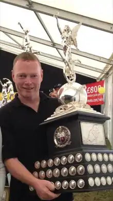 ![]() Carswell with the Senior Manx Grand Prix trophy | |||||||||||