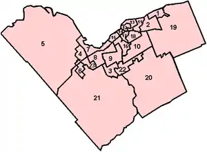 | Gloucester- South Nepean | 22 | 2558 | 19 | 2008 | 4621 | 6 | 24 |