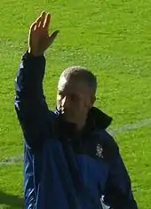 Mills' first match in charge was a 1–1 draw at home to Bath City on 16 October 2010, and with results improving he was named the Conference Premier Manager of the Month for November 2010 after York recorded four wins and three draws, including a 3–0 home win over Rotherham United in the first round of the FA Cup.[123][124][125] In the third round of the competition Mills' York played Premier League team Bolton Wanderers, who won 2–0 with late goals from Kevin Davies and Johan Elmander.[126] York made a push toward the play-off places, and by mid March 2011 were sixth in the Conference Premier, just one place outside the play-offs.[123][127] York finished 2010–11 in eighth place in the Conference Premier,[123] The Press claiming Mills "restored pride and belief into the club" with his "unbounded optimism and positivity".[128]