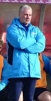 Mills made eight appearances for Boston before being appointed the player-manager of Southern League Premier Division club Tamworth on 12 January 2001.[74][75][76] He was not in charge for the following day's 3–0 home defeat to Boston in the FA Trophy, with Tim Steele continuing as caretaker manager for this match.[77][78][79] His first match as manager was a 2–2 home draw with Havant & Waterlooville on 20 January 2001, in which he played and scored.[77][80] Tamworth finished the season in 12th place in the Southern League Premier Division,[81] and Mills made 16 appearances and scored 2 goals.[78] Tamworth missed out on promotion to the Football Conference on the final day of 2001–02, finishing second in the Southern League Premier Division, two points behind the title winners Kettering Town.[82][83] He played often for Tamworth this season, making 30 appearances.[84]