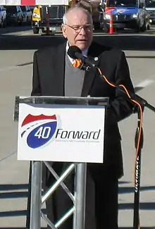 ![]() Ridley speaking at the opening ceremonies for the new Crosstown Expressway in Oklahoma City | |
