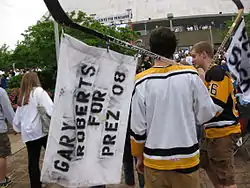 Roberts did not last much longer in Florida as, following a 40-point season in 2005–06,[4] the Panthers sought to trade him to the Pittsburgh Penguins late in the 2006–07 season. Several members of the Penguins, including Mario Lemieux and general manager Ray Shero, sought to convince Roberts to agree to the deal as he was initially unsure about leaving Florida but ultimately agreed to the trade.[42] The deal was completed at the February 27, 2007, trade deadline as Pittsburgh sent prospect Noah Welch to Florida in exchange for Roberts.[43] He was brought in to add a leadership presence to a young Penguins team.[44] He finished the regular season with 13 points in 19 games in Pittsburgh and helped the Penguins reach the playoffs for the first time in six years.[4][45]