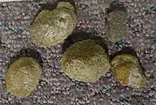 The type specimen of Gastonia burgei (CEUM 1307) was discovered in a bonebed from the limestone strata of the lower Cedar Mountain Formation in Yellow Cat Quarry, Grand County, eastern Utah, the type specimen consisting of a single skull.[1][2] The type specimen was found alongside 4 partial skeletons of Gastonia that were placed as paratypes, along with the type specimen of Utahraptor and an Iguanodontid.[1][2] Gastonia is among the most common dinosaur fossils in the Cedar Mountain Formation, with many individuals being found across several quarries in the southwest.[1][2] In 2004, the number of skulls was reported as four,[3] in 2014 this had risen to ten.[4] Gastonia was formally named and described by James Kirkland in 1998, from the holotype specimen and other fossil material recovered beginning in 1989.[2] The name Gastonia honors US palaeontologist and CEO of Gaston Design Inc. Robert Gaston. The species G. burgei was named for the director of the College of Eastern Utah Prehistoric Museum, Donald L. Burge.[2]