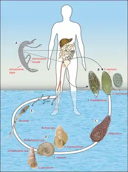 | Example of a gastropod-borne parasitic disease - The transmission cycle of schistosomiasis | |