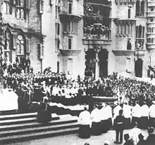 Gaudí dedicated the last years of his life entirely to the "Cathedral of the Poor", as it was commonly known, for which he took alms in order to continue. Apart from his dedication to this cause, he participated in few other activities, the majority of which were related to his Catholic faith: in 1916 he participated in a course about Gregorian chant at the Palau de la Música Catalana taught by the Benedictine monk Gregori M. Sunyol.[39]