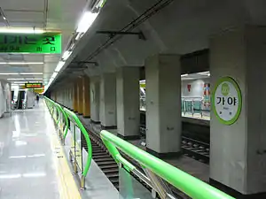 Gaya Station (Korean: 가야역; Hanja: 伽倻驛) is a station on the Busan Metro Line 2 in Gaya-dong, Busanjin District, Busan, South Korea. The station is unrelated to the Gaya Station which used to be operated by Korail.
