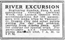 Also in June 1905 Gazelle was used for tourist excursions up the Columbia river.[7]