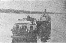 During the night of July 20–21, 1910, while Gazelle was moored at Vancouver, Washington, it was rammed during the night by another vessel.[28] As a result Gazelle sank, leaving the pilot house above the surface of the water.[28] The name of the other vessel was not disclosed in the initial report.[28] Gazelle was then valued at about $4,000 and was owned by the Scott brothers.[28] Following the sinking, the tug Alarm was placed alongside Gazelle.[28] Gazelle was thought likely to be raised and returned to service.[28]
