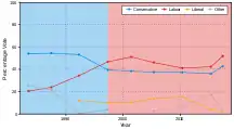 Gedling is a constituency in Nottinghamshire created in 1983 represented in the House of Commons of the UK Parliament since 2019 by Tom Randall of the Conservative Party.[n 1][n 2] The seat (and its predecessor, Carlton) was a safely Conservative until the Labour Party's landslide victory in 1997, when it was won for Labour by Vernon Coaker. Labour held Gedling until 2019, when it was regained by the Conservative Party.
