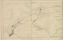 The original constructing plan is connecting Melbourne and Geelong from Melbourne Spencer Street to Williamstown.[7] The junction to Williamstown was a deliverable of Mount Alexander and Murray River Railway Company's project.[13] The partner company was insolvent in 1856.[13][2] Thus, an adjusted line was built so the train could temporarily terminate at Greenwich near Newport then customers transited to a steamer to travel to Melbourne or Sandridge Railway Pier.[15]