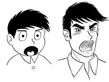 In the 1950s, mainstream Japanese comics (manga) came from Tokyo and was aimed at children, led by the work of Osamu Tezuka.[2] Before Tezuka moved to Tokyo, he lived in Osaka and mentored artists such as Yoshihiro Tatsumi and Masahiko Matsumoto who admired him.[3] Although influenced by Tezuka's adaptation of cinema techniques, they were not interested in making comics for children in Tezuka's Disney-esque style that always included humoristic elements. They wanted to write consistently dramatic stories with aesthetics influenced by film noir and crime novels.[4] Gekiga were more graphic and showed more violence than the children's manga before them.[5][6] Tatsumi explained, "Part of that was influenced by the newspaper stories I would read. I would have an emotional reaction of some kind and want to express that in my comics."[5] The name gekiga was coined in 1957 by Tatsumi and adopted by other more serious Japanese cartoonists, who did not want their trade to be known by the more common term "manga", meaning "whimsical pictures".
