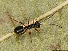 Gelis agilis is a tiny wingless hyperparasitoid wasp that attacks the parasitoid wasp Cotesia glomerata[1] and other parasitoids, like Dinocampus coccinellae. It reproduces asexually, with adult females feeding on their hosts' hemolymph in order to create eggs.[2]