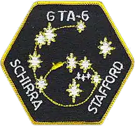 The original patch had called the flight GTA-6 (for Gemini-Titan-Agena) and showed the Gemini craft chasing an Agena. It was changed when the mission was altered to depict two Gemini spacecraft.