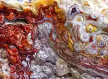 At present, agate and onyx differ only in the manner in which the stone is cut: if it is cut to show the layers of colour, it is called agate; if cut parallel to the lines, onyx. Formerly, an agate that was banded with well-defined colours was the onyx. The banded agate is used for the manufacturing of cameos.